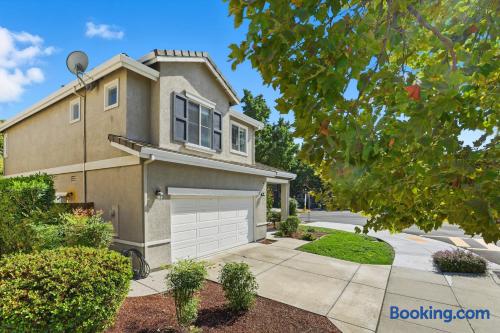 Modern 3BR/2.5BA home in a peaceful and convenient Dublin neighborhood. Bright, stylish, and thoughtfully designed with spacious living areas, a fully equipped kitchen, Smart TV, fast WiFi, and in-unit laundry. Enjoy the private backyard for morning coffee or relaxing evenings. Located close to BART(45 mins to SF), shopping centers, restaurants, and major employers in the Tri-Valley area. Perfect for families, business travelers, and tech professionals seeking a comfortable Bay Area retreat.
