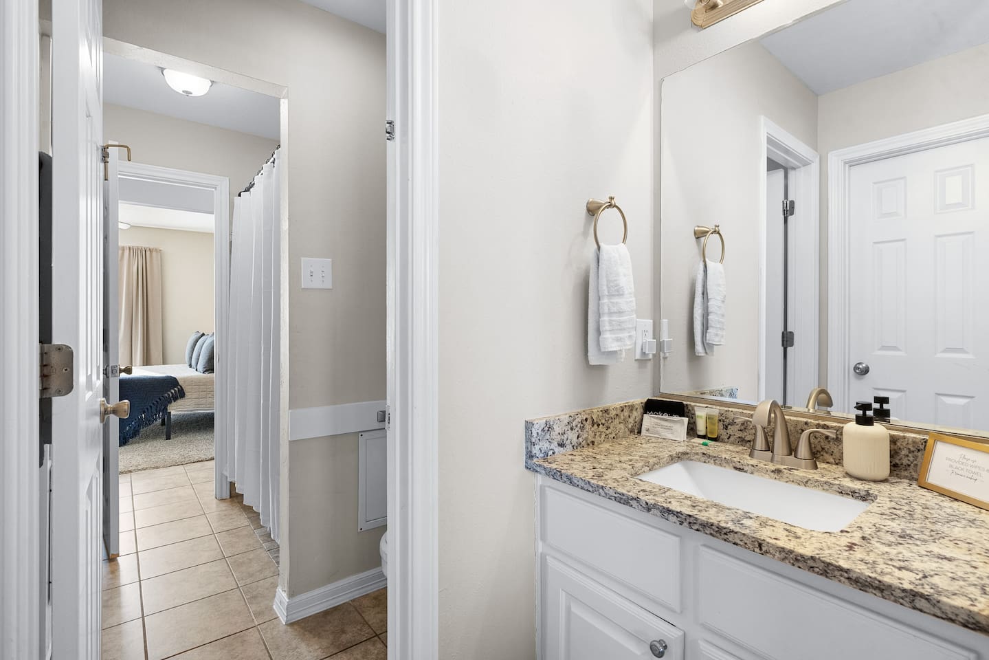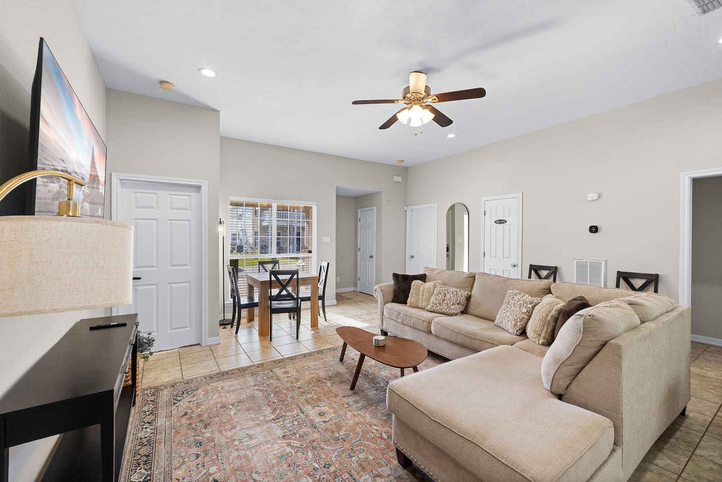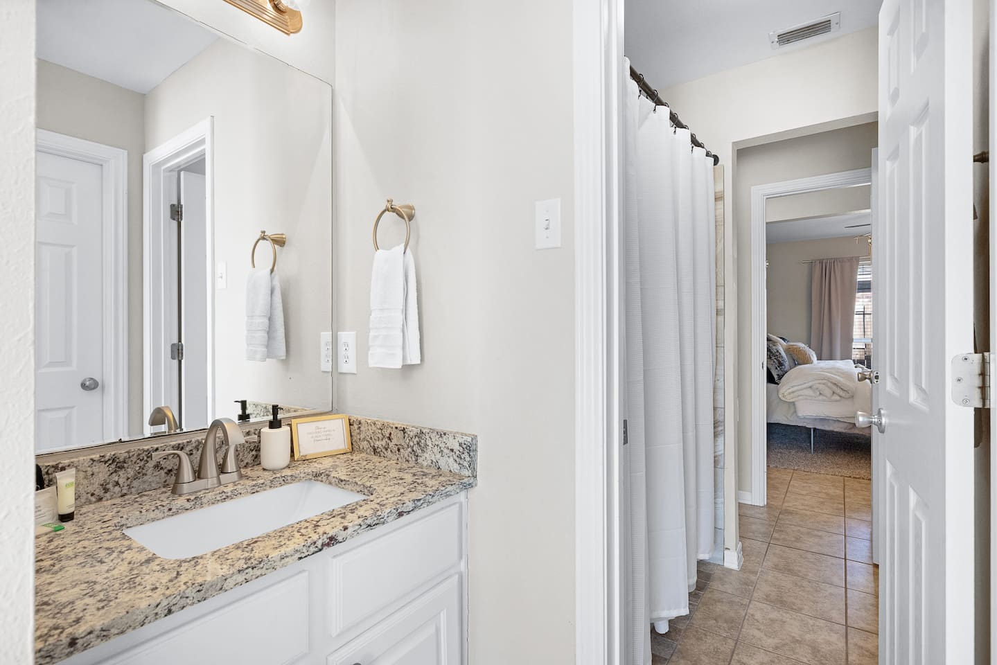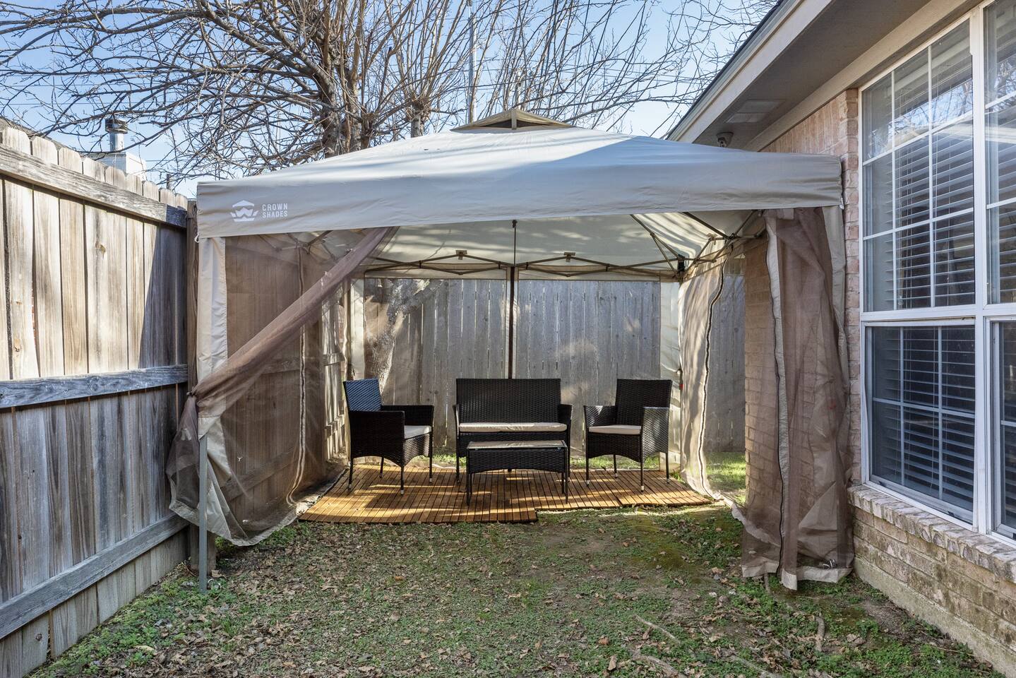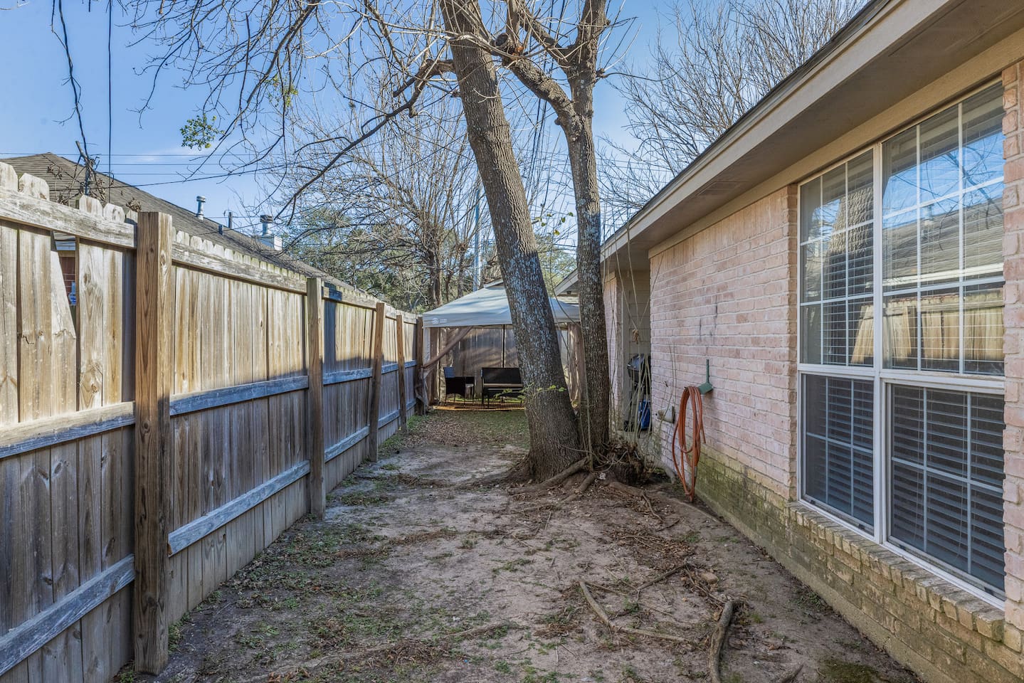 The property is a single-family house with a 1,520 sq ft living space on a 4,000 sq ft lot size. It is a 2 bedroom (1 King + 1 Queen), 1.5 bath house, with an open kitchen style. It has exterior private parking for at least 4 vehicles parked very comfortably (and free street parking available). The house has a central heating/AC controlled by an Ecobee thermostat. There is a washer and dryer inside the unit, and the kitchen is well stocked with plates and pans, a dishwasher, oven, filtered coffee marker, Keurig coffee maker and microwave. There is a large comfy couch with a 75" smart TV for your comfort. An extendable dining table for 4-6 people. Patio has a covered 10' x 10' tent with outdoor furniture, a BBQ grill, and outdoor games like Cornhole and Giant Jenga! Access to the unit is via a personalized digital door key code to your unit. 👉 1 Gbps blazing fast Internet 👉 Plenty on-premise parking (4 cars easily) and there is street parking 👉 Well equipped kitchen, coffee/tea bar, toaster, Keurig coffee machine & pods, and many pots and pans 👉 Super easy access with Smart digital lock 👉 Temperature controlled via Ecobee Thermostat 👉 2 bedrooms (1 King and 1 Queen) with firm mattresses for good support and blackout curtains; there is a 50" smart TV in the King bedroom 👉 High quality linens 👉 1 Shared ensuite bathroom (Jack & Jill style) and 1 half-bath in the living room area 👉 Large comfy couch and a large 75-inch Smart TV for well deserved relaxation 👉 Patio has a covered 10' x 10' tent with outdoor furniture, a BBQ grill, and games like Cornhole and Giant Jenga! 👉 Full sized Washer and Dryer in unit 👉 Safe and quiet neighborhood 👉 5-min walk to A&M (Bonfire Memorial) and 5-min drive to Kyle Field Checking in: Super easy, prior to your arrival you will receive a personalized keycode (or code to the lockbox) for your stay. No meeting, no waiting around. Check-in: 4 PM Check-out: 11 AM Quiet hours 9PM-7AM